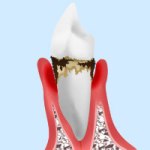 | プラークは細菌の塊です。プラークは唾液、血液と結びつき歯石になり、容易には取れなくなります。歯ぐきから血が出ると、その周辺の歯に歯石がつきやすくなります。歯石は歯周病菌の温床となり、さらに病状が悪化する危険があります。 | 歯ぐきの奥にある歯を支える顎の骨が溶かされると、その骨を覆っている歯ぐきも下がっていきます。その結果、歯の根元のほうまで露出してしまうので、歯が長くなったように見えます。 |